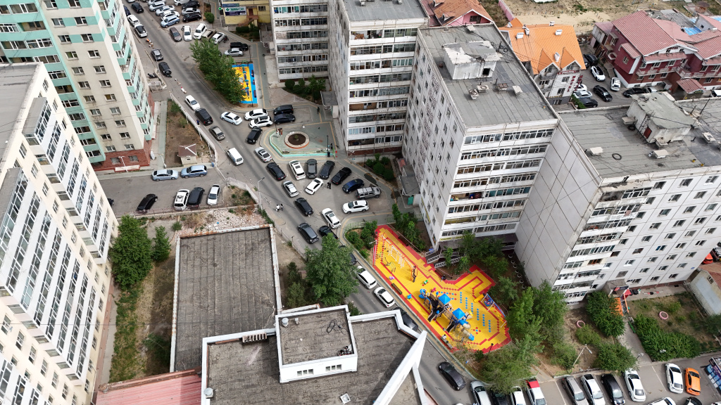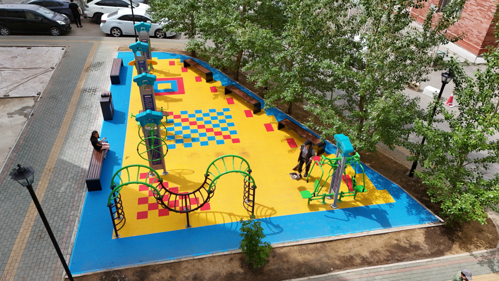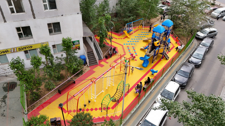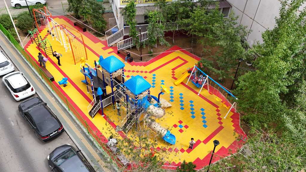 Баянгол дүүргийн 17-р хороо, 41-р байрны баруун талд тоглоомын талбай, тохижилтын ажлыг Улсын төсвийн хөрөнгө оруулалтаар он дамжин хийж гүйцэтгэлээ.