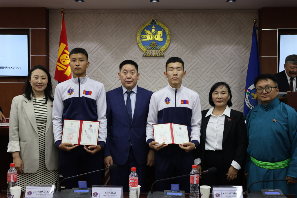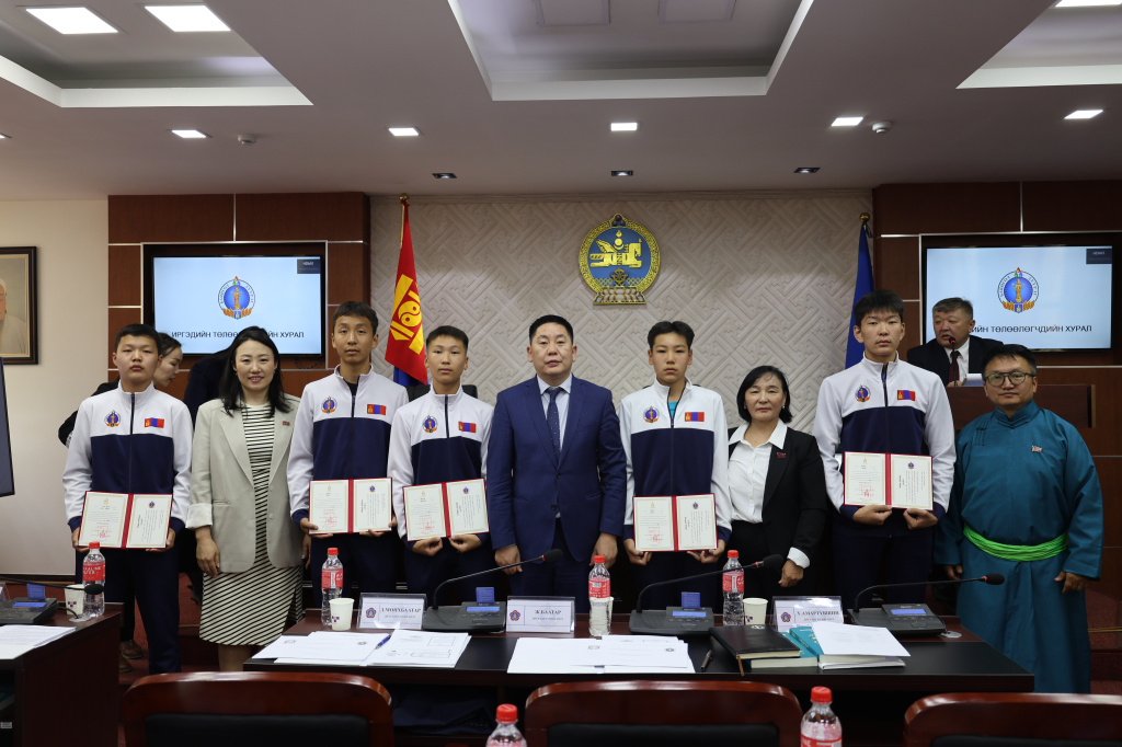 Иймд өнөөдөр дүүргийн ИТХ-ын дарга, төлөөлөгчид болон дүүргийн удирдлагуудын хамт “BRD-Volleyball club”-ын дасгалжуулагч, 141-р сургуулийн багш Г.Ганбаяр болон тэмцээнд амжилттай оролцсон U15 ангиллын баг тамирчдаа хүлээн авч, хүндэтгэл үзүүллээ. U15 ангиллын эрэгтэй баг тамирчид нь Г.Ганбаяр дасгалжуулагчийн удирдлаган дор байнгын бэлтгэл сургуулилалт хийж байгаа 141-р сургуулийн сурагчдаас бүрдсэн шигшээ баг бөгөөд сургуулийн шигшээ багийн амжилтаас Олон улсын хэмжээний өсвөрийн шигшээ багийн амжилтыг үзүүлж байгаагаараа онцлог юм.