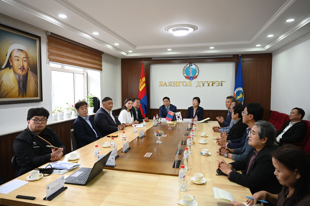 БНСУ-ын Жиндо хотын дарга Park Keumrye тэргүүтэй төлөөлөгчид (2025.07.22) Баянгол дүүрэгт зочиллоо. Зочдыг дүүргийн Засаг дарга Ө.Сумъяабаатар, орлогч Д.Мөнхбаатар болон дүүргийн ИТХ-ын төлөөлөгчид хүлээн авч уулзсан бол Жиндо хотоос ирсэн төлөөлөгчдийн бүрэлдэхүүнд тус хотын даргаас гадна дэд дарга Lee Munkyo, Иргэдийн хурлын төлөөлөгчид, Тамгын газрын дарга болон холбогдох бусад алба хаагчид багтсан. Уулзалтын үеэр тус хотын удирдлагууд хэд хэдэн чиглэлд хамтарч ажиллах талаар санал тавилаа. Тодруулбал, хоёр тал хамтран Соёлын солилцооны хөтөлбөр хэрэгжүүлэх, дүүргийн Жижиг дунд үйлдвэрлэл эрхлэгчтэй хамтран бизнесийн салбарт хамтарч ажиллах талаар санал тавьж, хамтын ажиллагааны талаар ярилцлаа.